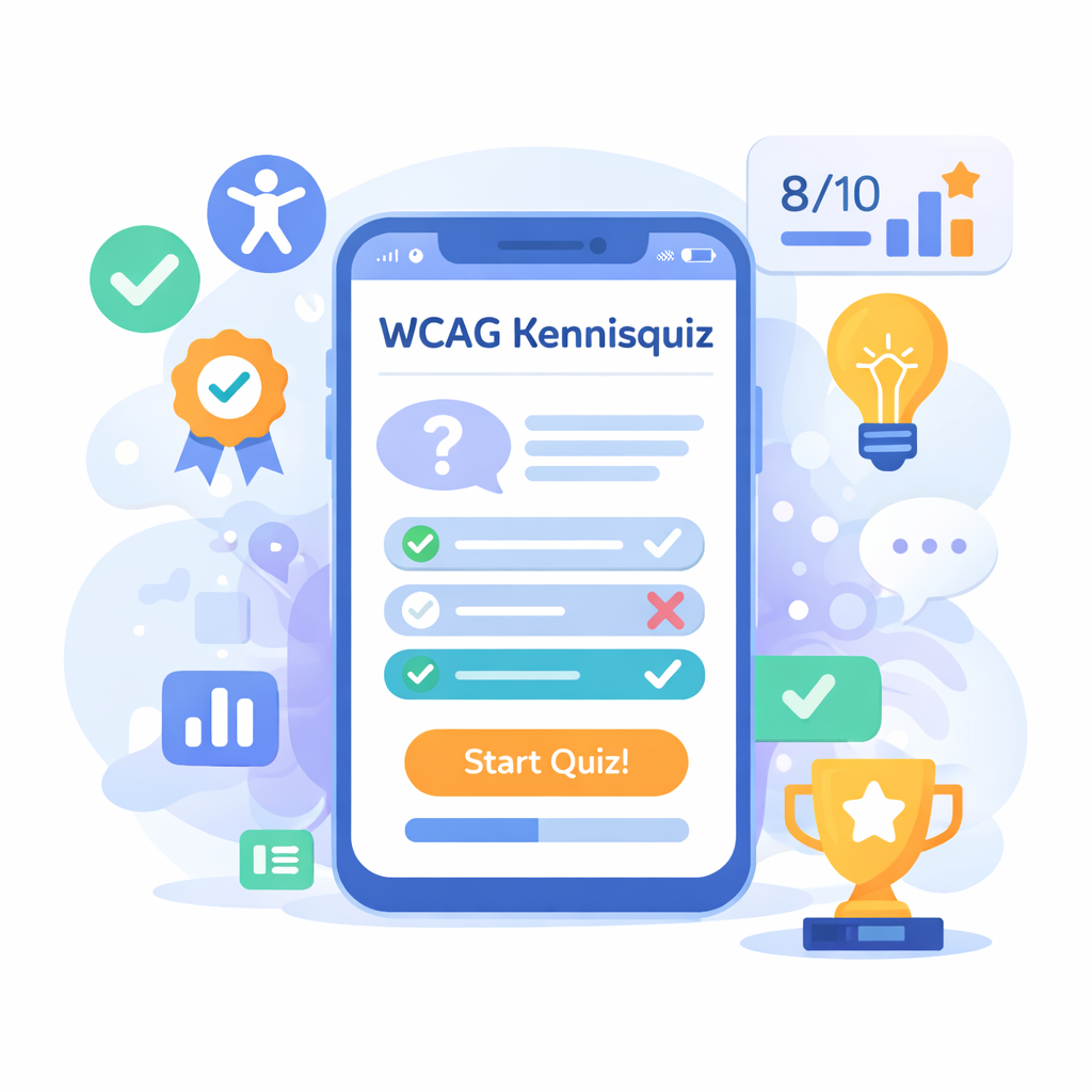 Wil je spelenderwijs meer leren over WCAG? Download de WCAG-kennisquiz voor Android, iPhone of speel de quiz op WCAG.nl.